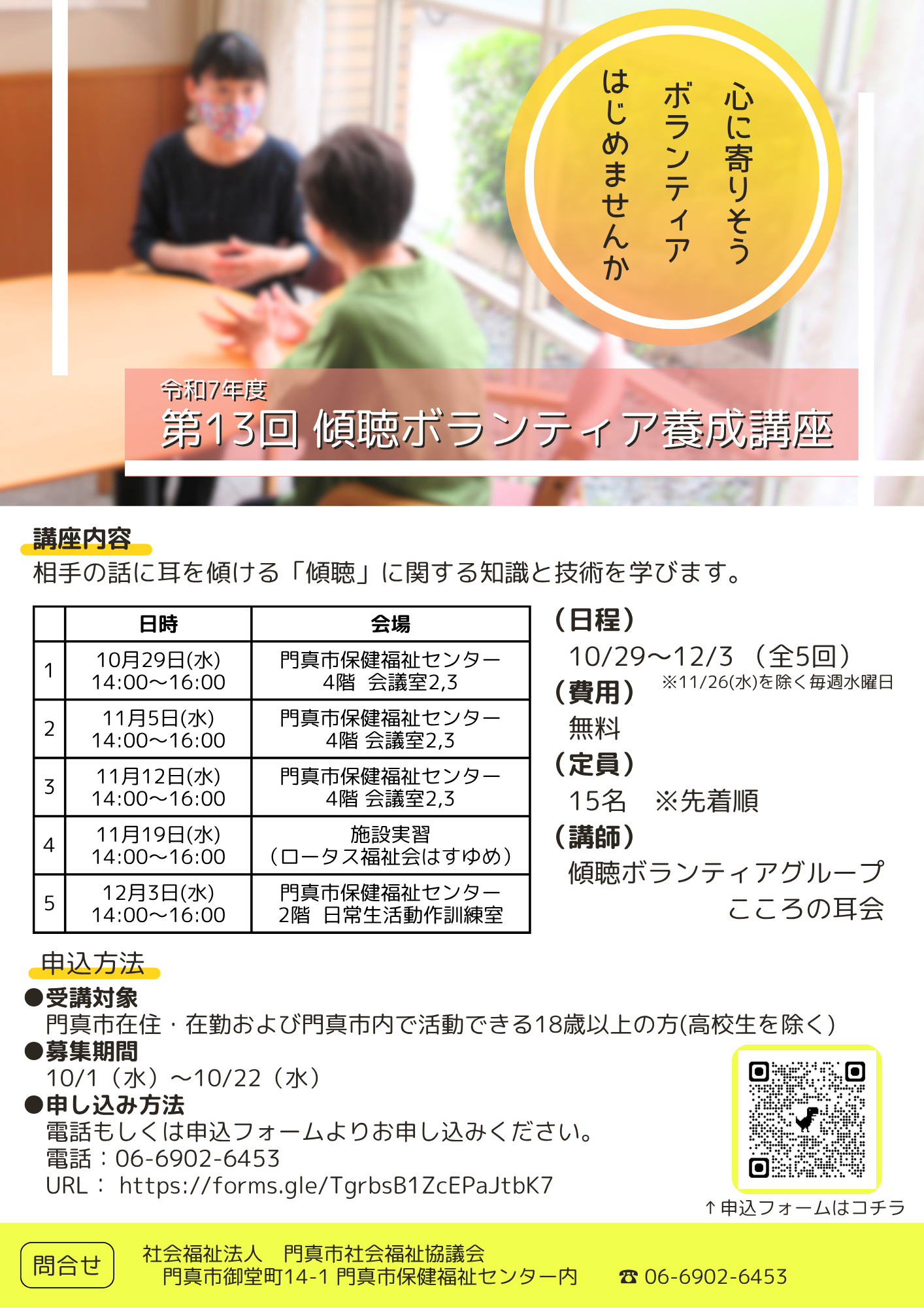講座の詳細については『ボランティア養成講座』のページをご覧ください。